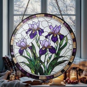 Purple Iris Flower Stained Glass Suncatcher, Flower Lovers Window Decor, Birth Month Flower Gift For Her, Window Hanging For Nature Lovers