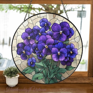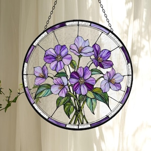 Violet Flower Stained Glass Suncatcher Window Hanging,Violet Flower Art Decor,Mother Day Gift For Mom Grandmother,Home Indoor Outdoor Decor