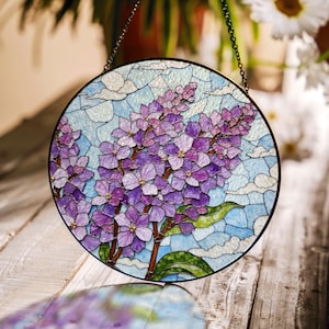 Purple Lilac Flowers Stained Glass Suncatcher, Floral Window Hanging Decor, Purple Flower Gifts, Spring Flowers Decor, Botanical Sun Catcher