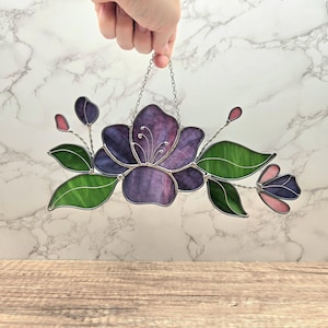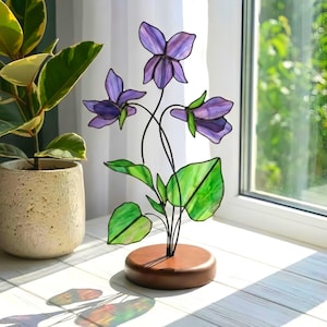 Violet Flower Stained Glass Suncatcher, Floral Window Hanging, Violet Flower Decor, Birthday Flowers Gifs, Gift for Mom, Plant Home Decor