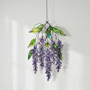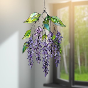 Wisteria Stained Glass Suncatcher, Purple Floral Window Hanging, Handmade Glass Art, Botanical Sun Catcher Gift