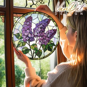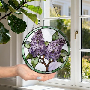 Purple lilac flowers stained glass suncatcher window decor gift for flower lover
