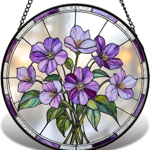 Violet Flower Stained Glass Suncatcher, Floral Window Hanging Decor, Purple Flower Home Decoration