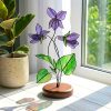 Hummingbird Floral Stained Glass Suncatcher, Purple Bird Window Hanging Decor, Botanical Sun Catcher, Nature Lover Gift