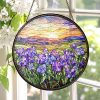 Lavender flower stained glass window round suncatcher handmade gift for mom or garden lover