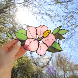 Hibiscus Pink Flower Stained Glass Suncatcher Spring Gift Home Decor Window Hangings Glass wall art Flower suncatcher Mothers Day gift