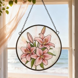 Pink Lily Glass Suncatcher: Floral Window Hanging Decor