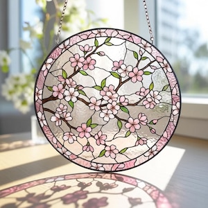 Cherry Blossom Stained Glass Suncatcher, Pink Sakura Floral Window Hanging, Spring Botanical Glass Art Decor