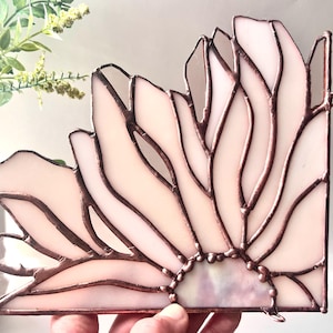 Stained Glass Flower Suncatcher: Pastel Pink Daisy Corner, Floral Window Decor
